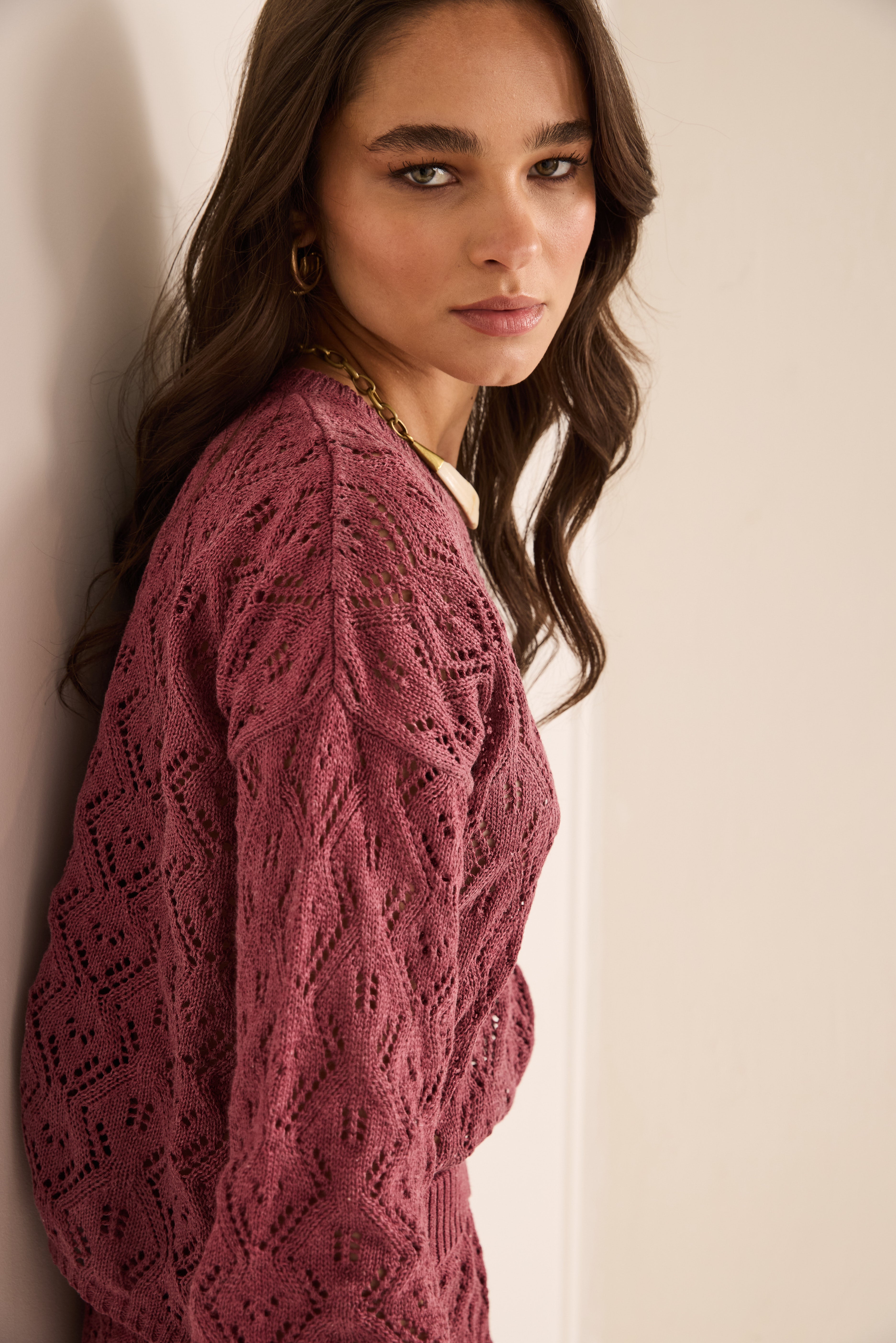 Conjunto tejido en algodón viscosa con punto calado.