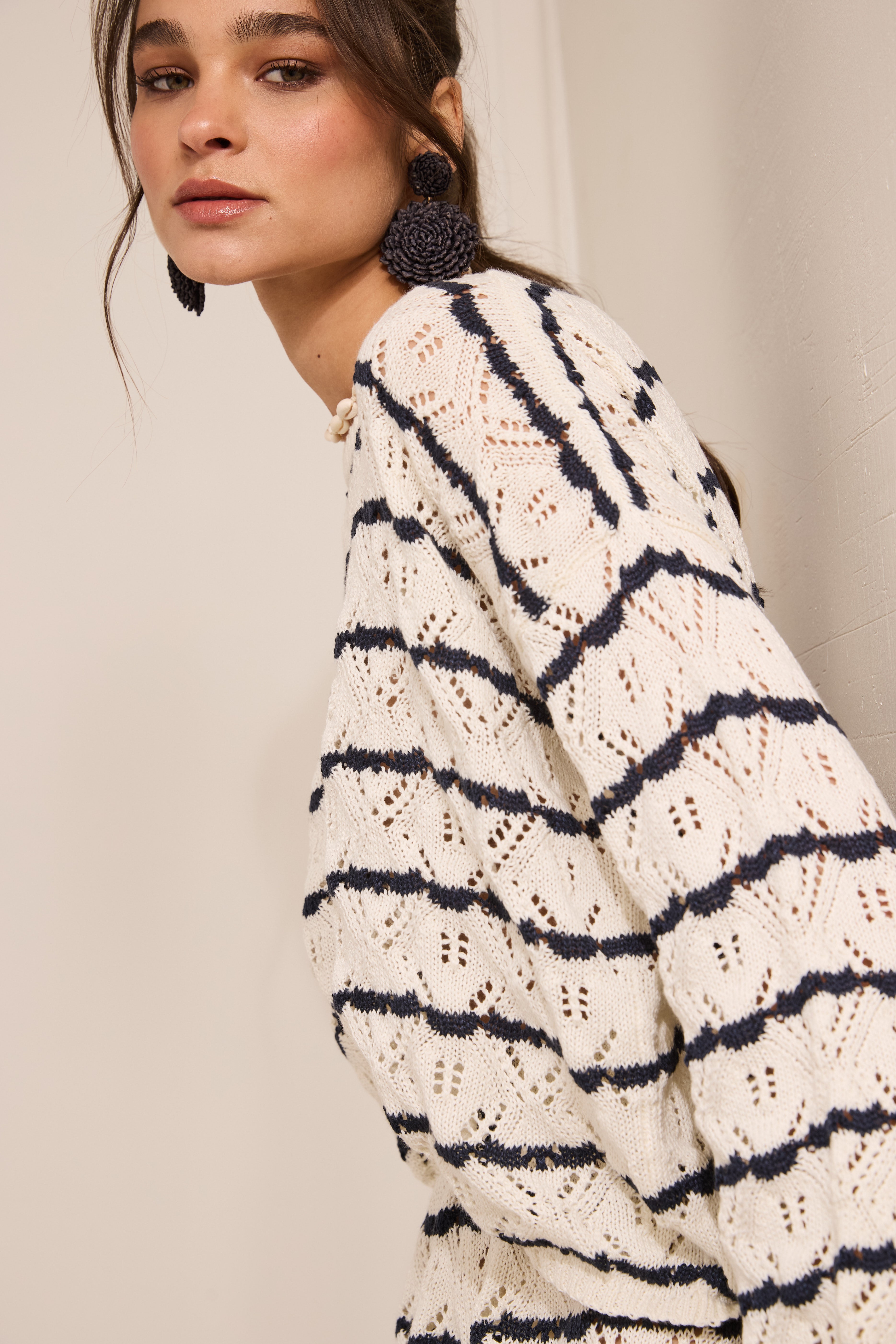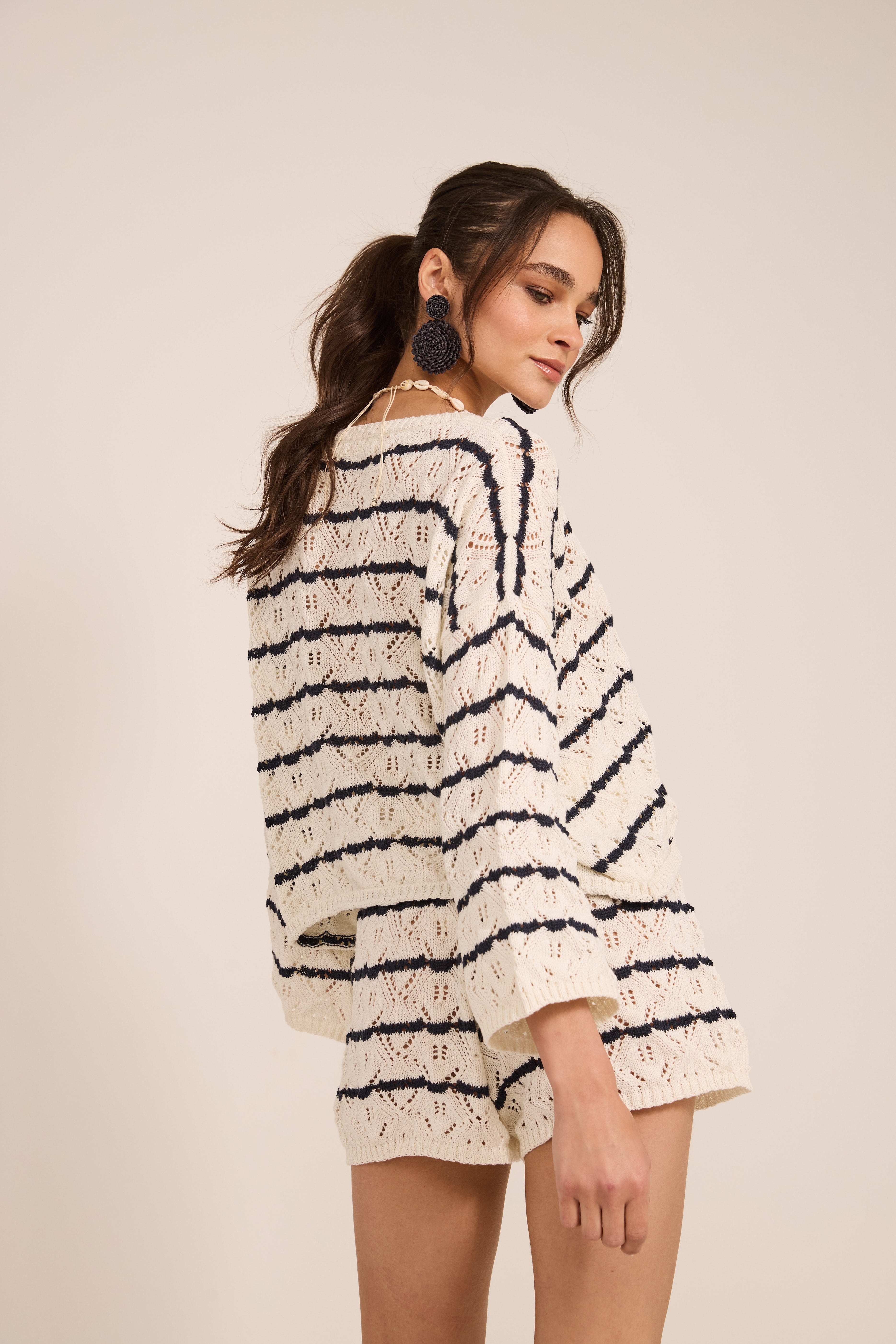 Top de punto con manga larga y short de punto corto con pretina de elástico.